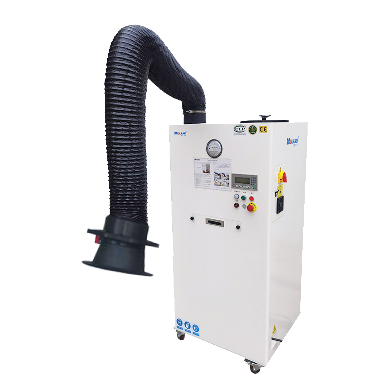 This MLWF280FA plus movable welding fume extractor is an economical and efficient product for cleaning and dedusting with automatic pulse jet cleaning system and built-in air compressor. The nano cartridge filter has a large filter area to achieve better purification effect.