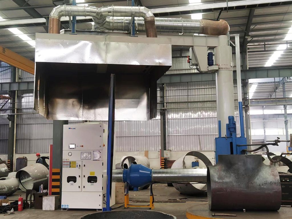 This project is for a pipe fitting processing center in Jiangyin equipped with a CNC gantry plasma cutting machine. Based on on-site working conditions, adopted Moland fume extraction unit and a hood-suction fume extraction system, with the fume collection hood capable of moving left/right, forward/backward, and lifting up/down.