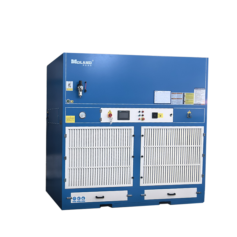 The telescopic grinding room can be customized according to the size of the workpiece. The room ventilation volume can be adjusted by raising and lowering the rolling shutter door to form a semi-enclosed environmentally friendly dust removal room. When not in use, the room can be retracted and does not take up space. Grinding cabinets are installed in the room to collect and filter the grinding dust.