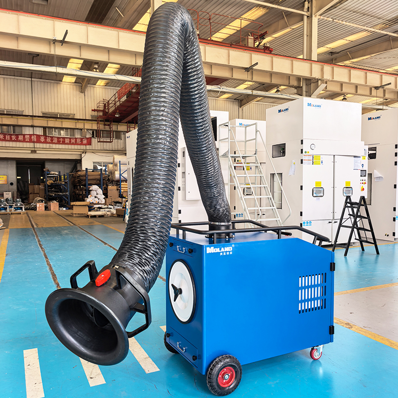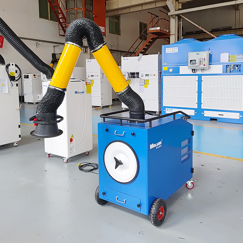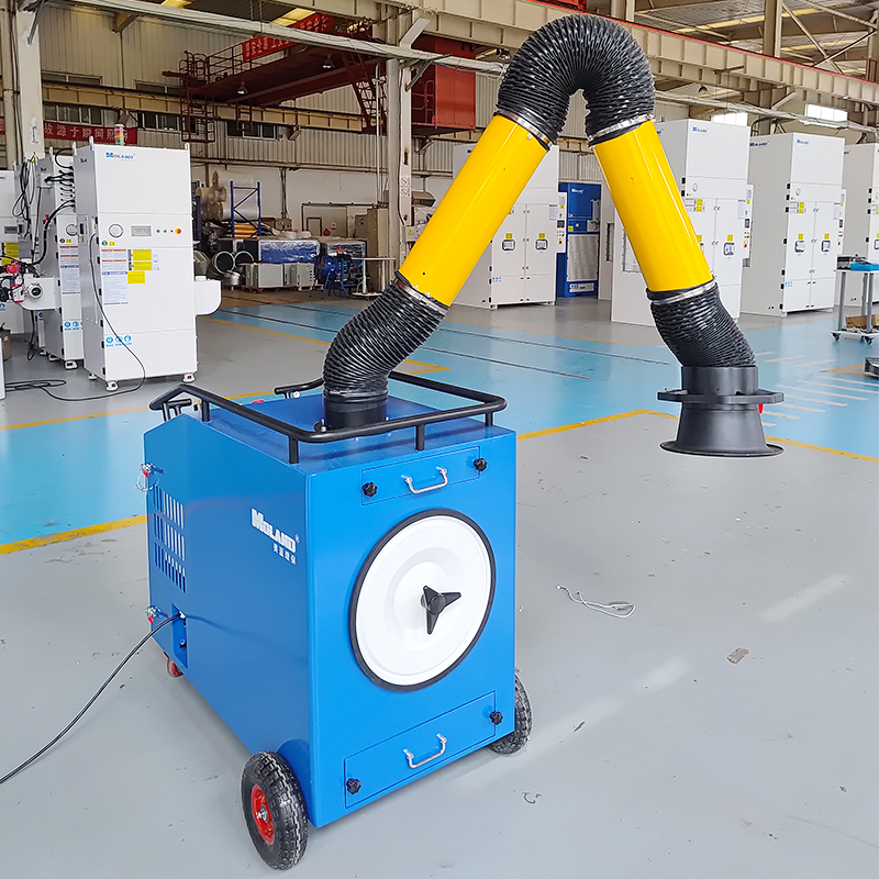 MLWF110A/150A Portable Welding Fume Extractor: Three-stage filtration (spark arrestor, 99.9% filtration Nano filter, HEPA filter). The HEPA filter can be replaced to activated carbon filter for deodorization. Fully automatic pulse jet cleaning + flexible arm, flexibly purifying welding fumes.
