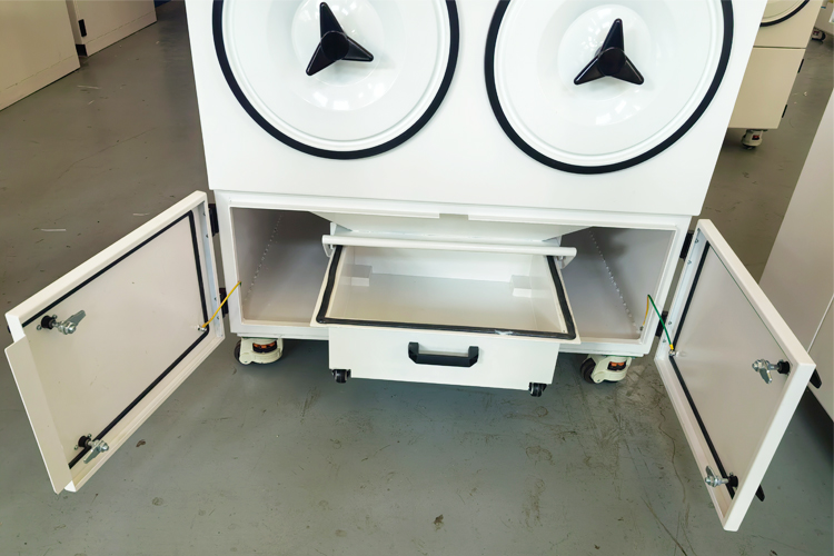 The Mobile Fume Extractor features two directional and two rotary polyurethane casters with brakes for easy mobility and stability. It's designed for fume and dust purification from welding, cutting, grinding, and various processes, as well as for collecting rare metal particles and valuable materials.
