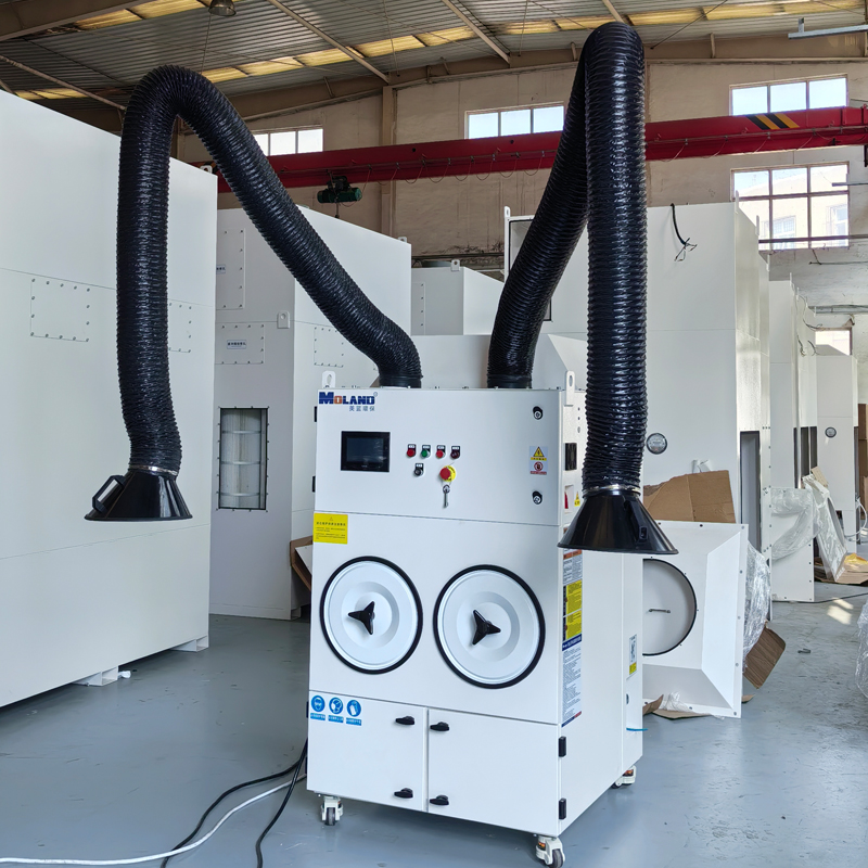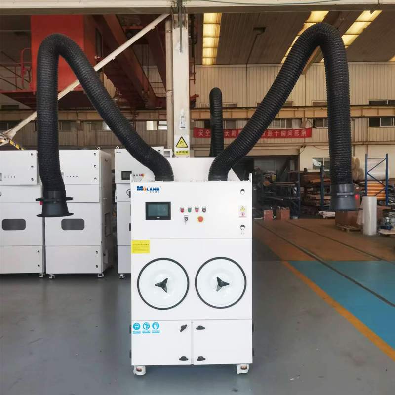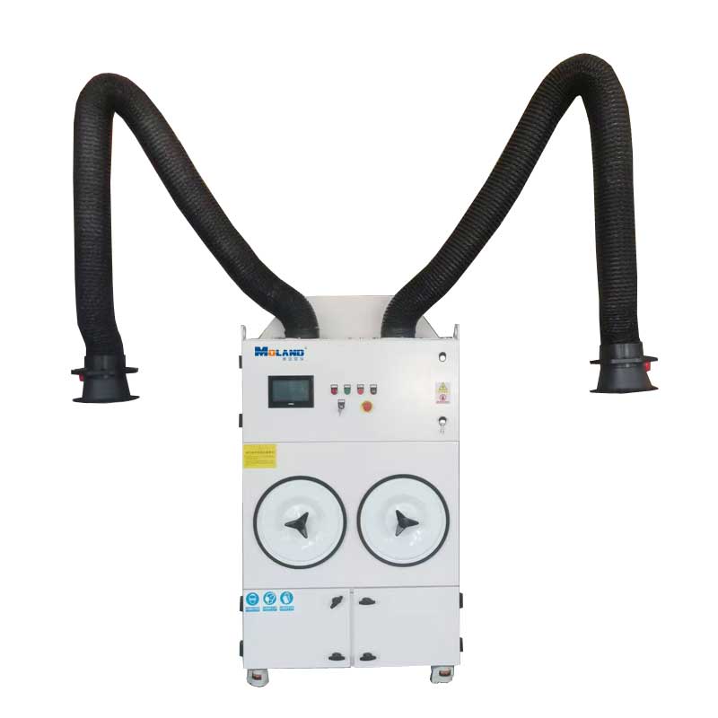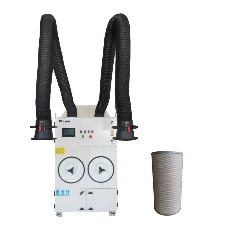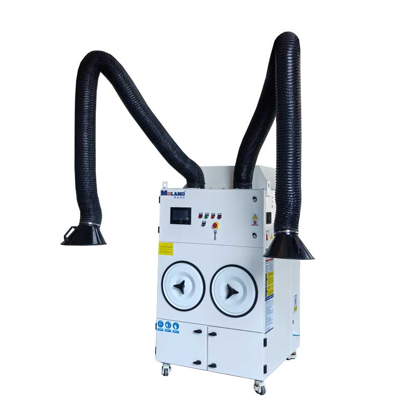 This mobile fume extractor is designed for industrial dust and fume in welding, polishing and other metal processing procedures. It is light weight and flexible, easy to operate. Using flame retardant Nano material cartridge filter, the filter efficiency up to 0.3um 99.9%. The extraction arm rotates 360 degrees and all adjustments are tooless.