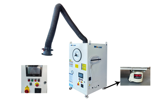The MLWF series mobile welding fume extractors go where you need them, suck up what you'd rather not breathe in, and are easily maneuverable for the best effect. The extraction arm is used of self supporting joints, flexible hose and smooth steel tubing make this fume extraction arm easy to work with and keep it near the source of the air contaminants. So contaminants including dust, fumes, smoke and more are removed right at their source.
