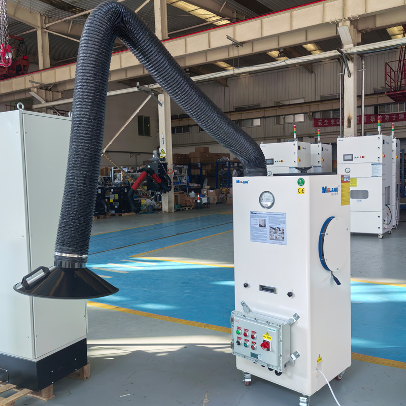 This MLWF220FA plus movable welding fume extractor is an economical and efficient product for cleaning and dedusting with automatic pulse jet cleaning system and large filtering area.